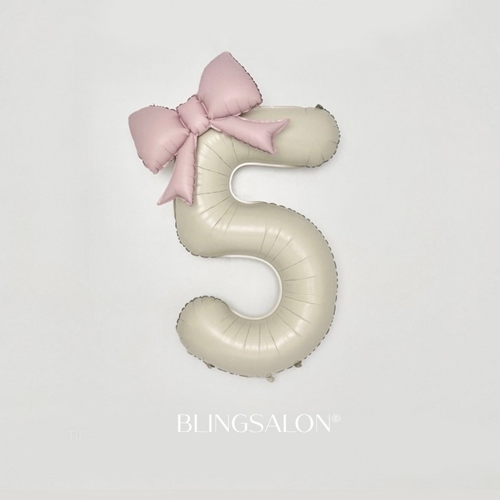 블링살롱 핑크 베이지 대형 숫자풍선 40인치 리본 데코 생일파티 돌잔치 포토존 파티 풍선, 숫자 5