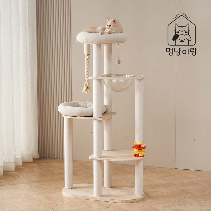 멍냥이랑 원목 캣타워 캣폴 스크래쳐, 1개, 몽실몽실 구름 캣타워