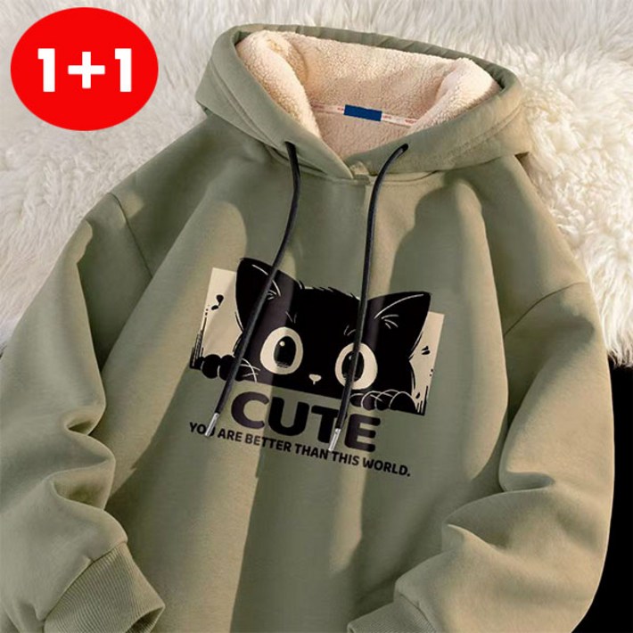 AOUGK 11 남성 양털 기모 후드티 캐릭터 후드 맨투맨 빅사이즈 긴팔 티셔츠 오버핏 겨울 코트 남녀공용