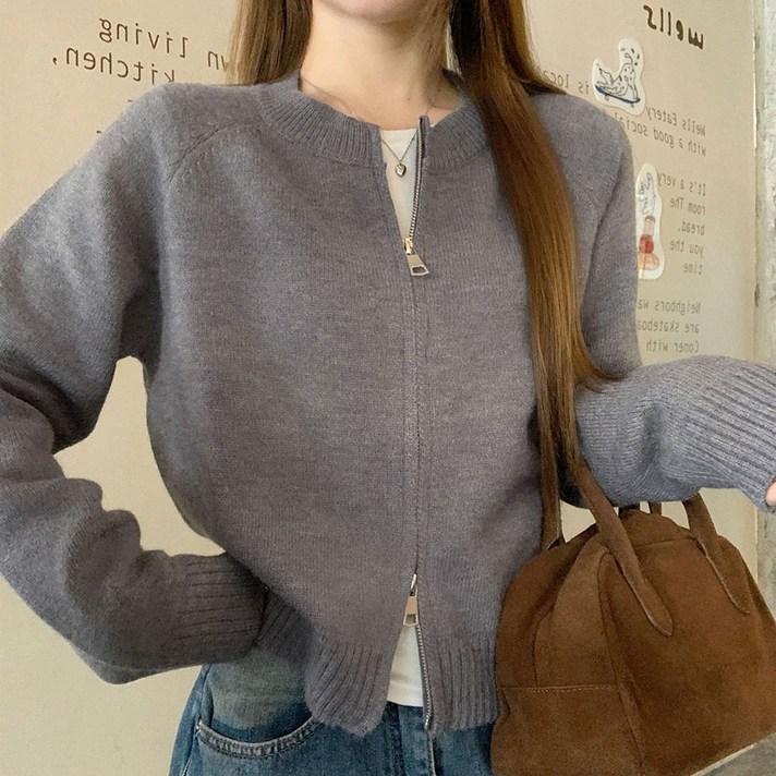 라운드넥 지퍼 니트코트 아우터 캐주얼 무지 루즈핏 니트 가디건 H45128