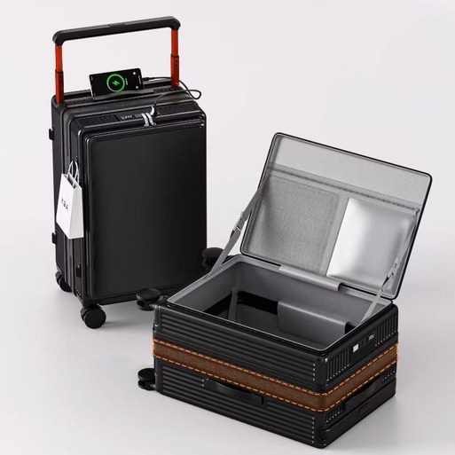전면 오픈형 확장형 USB 충전 와이드 핸들 여행 캐리어