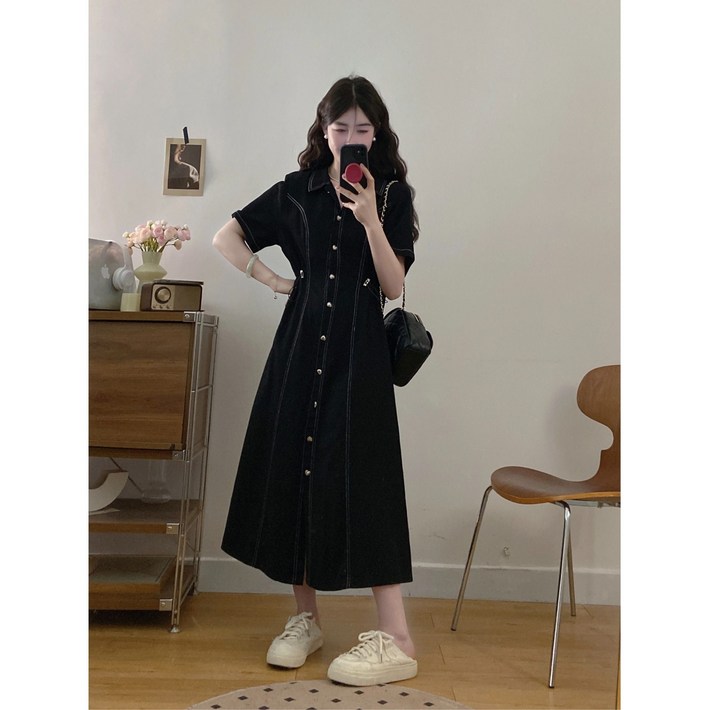 여성 빅사이즈 롱셔츠 반팔 데님 원피스