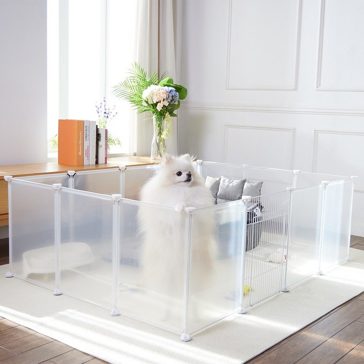 온누안 반려동물 강아지 보호 울타리 펜스 13p  안전문 1p, 1세트, 투명