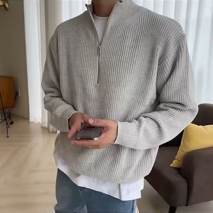 휠렉스 남성 스웨터 트렌드 루즈핏 반집업 니트 맨투맨 Y1386
