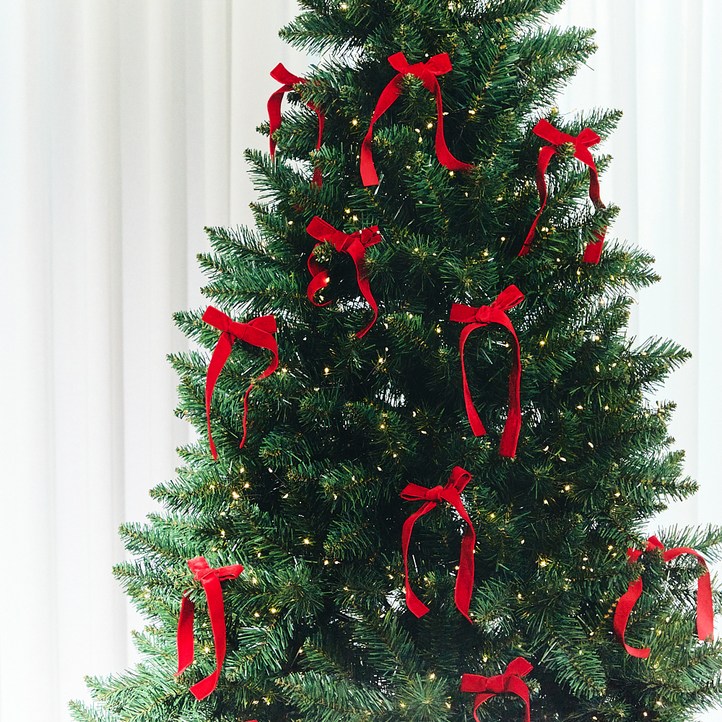 크리스마스 오너먼트 와이어 고리 포함 양면 벨벳 리본 테이프 장식