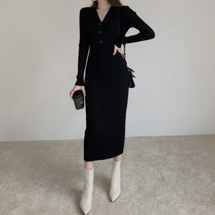 뮤리엘 여성용 슬림핏 골지 롱 원피스
