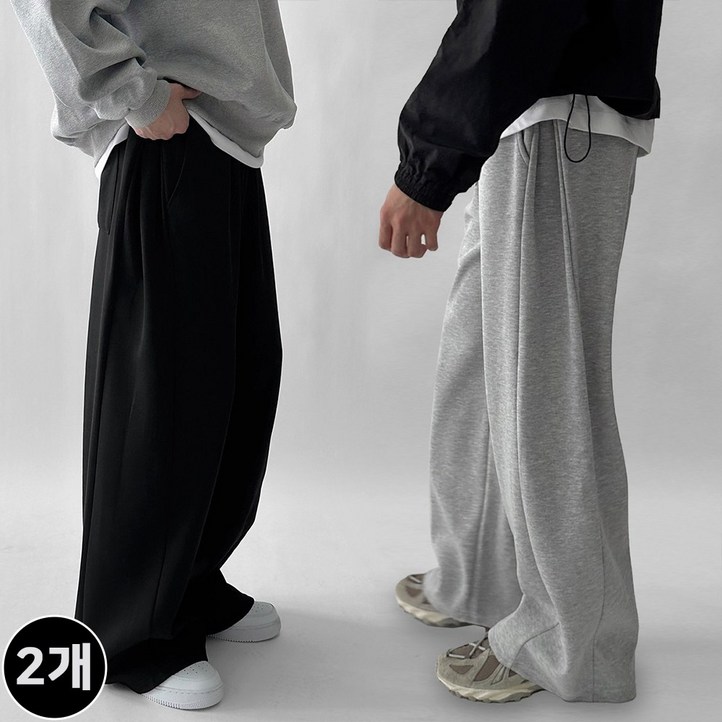 11 2장묶음 빠델 겨울 기모 핀턱 벌룬 와이드 트레이닝 스웻 커브드 팬츠 회색 트레이닝팬츠