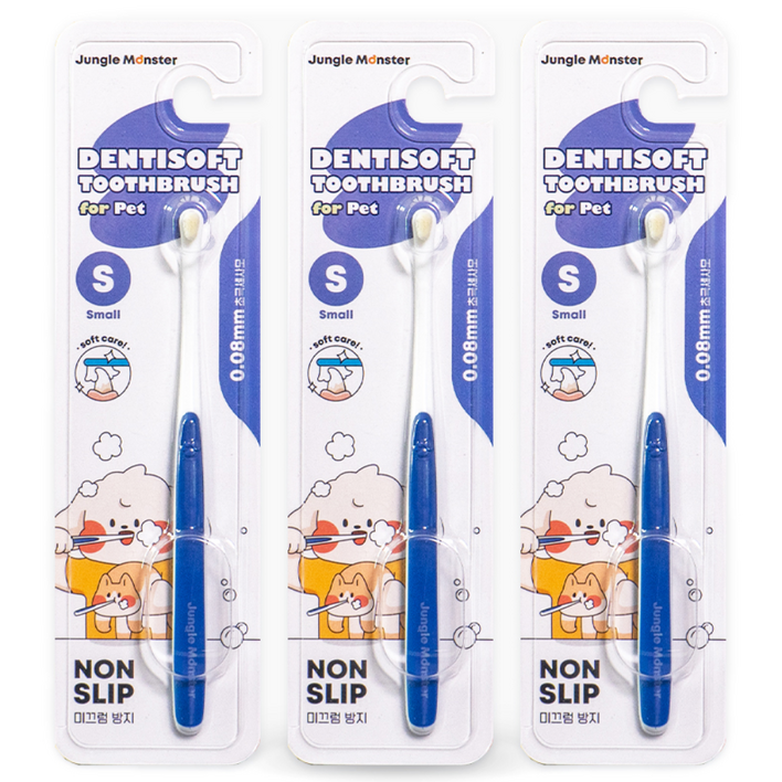 정글몬스터 초소형 반려동물 덴티소프트 극세사모 칫솔, 블루, 3개