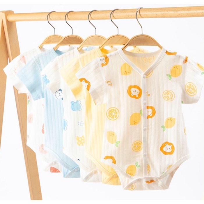 럭셔리베이비 풀스냅 반팔 바디수트 신생아 아기 순면 메쉬 배냇슈트 앞단추 여름 아기옷