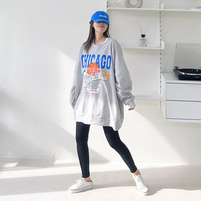 애플망고옷장 빅사이즈 씨카고 오버핏 여성 맨투맨 롱박스티셔츠