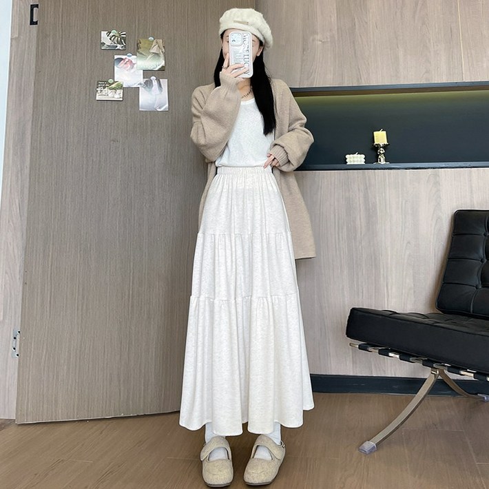2025 가을 신상 겨울 중장길 넉넉한 여성 롱스커트, 통기성 좋고 부드러워 편안하며 날씬하고 모든 코디에 잘 어울림