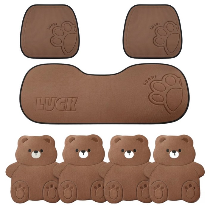 더반디 테디 곰돌이 인테리어 자동차 방석 앞좌석 뒷좌석 등받이 세트, 1세트, 테디 브라운