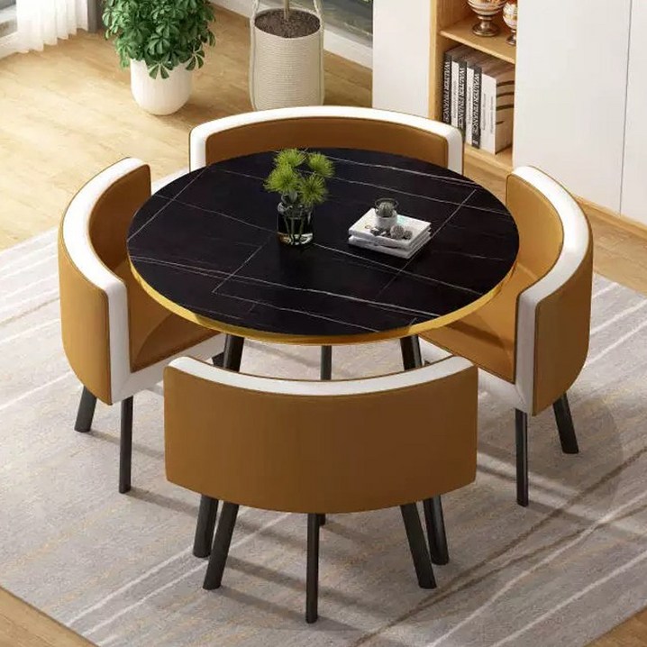 남쪽나무 북유럽 원형 테이블 의자 세트 카페 사무실 다이닝 거실, 갈색 검은 다리