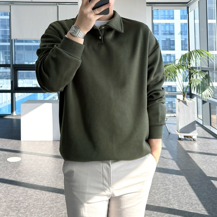 룩플레인 겨울 기모 원단 맨투맨 카라 티셔츠 9color