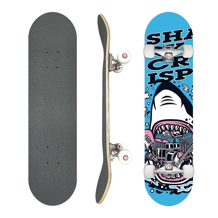 초보자용 31인치 더블킥보드 4륜 전문가용 트윈팁 스케이트보드 초보자용전연령대 안전 설계, 1개, 상어