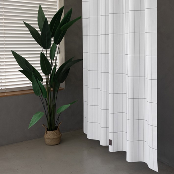 원세븐나인 패브릭 샤워커튼, 네로우그리드블랙, 1개