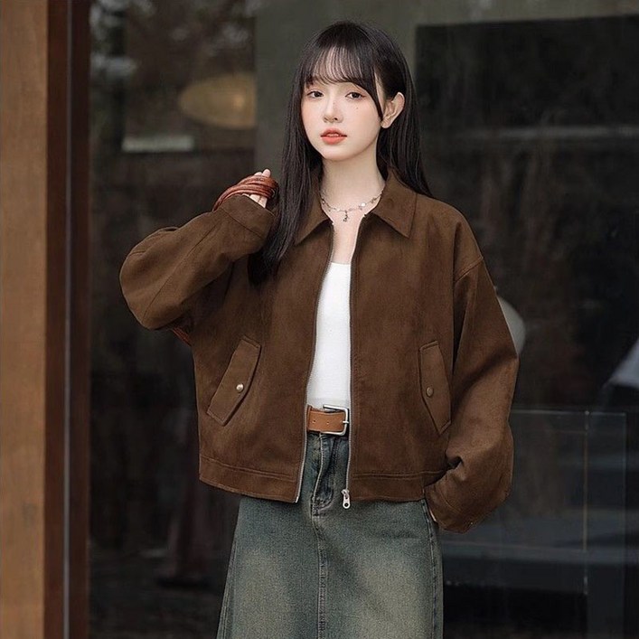 AOKADA 여성 가을 루즈핏 스웨이드 자켓 숏 코트