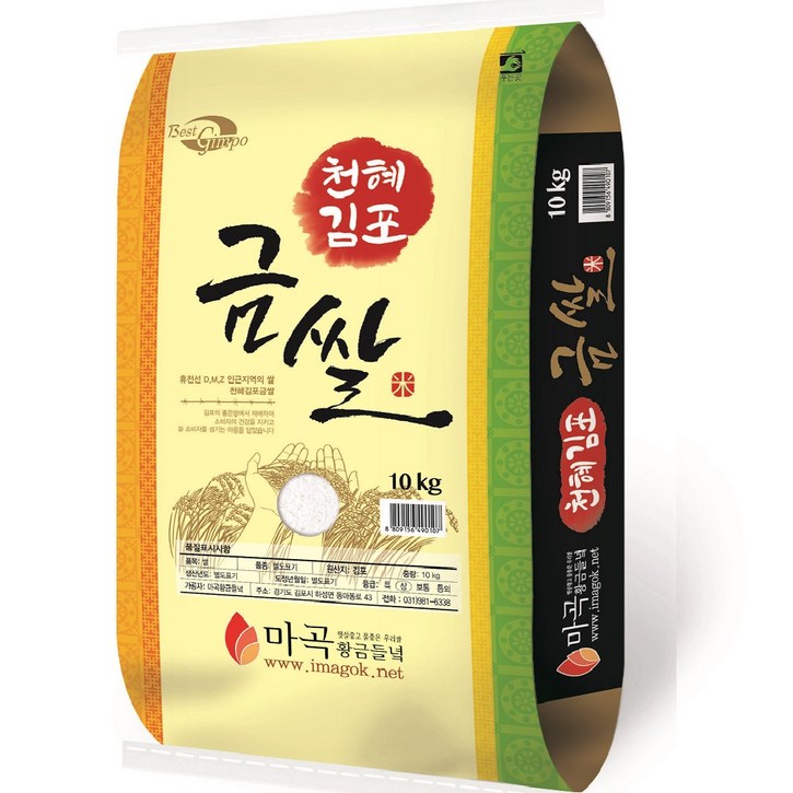 2025 햅쌀 김포 금쌀 백미, 1개, 10kg, 상등급