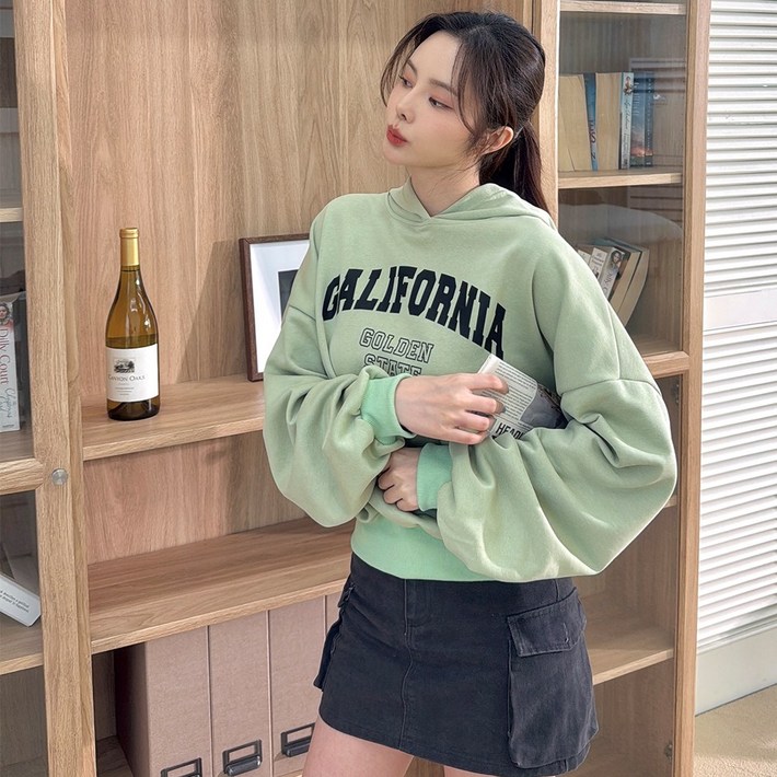 메이징 여성 봄가을 루즈핏 벌룬 소매 후드 프린팅 맨투맨 티셔츠
