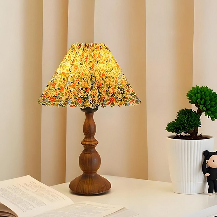 Mayho 빈티지 엔틱 무드등 플리츠 쉐이드 거실스탠드조명 밝기 조절 인테리어 조명, 플로럴