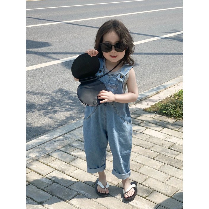 아짱 키즈남녀공용 키즈 데님 멜빵 배기 바지 롤업팬츠 오버롤 멜빵 청점프슈트